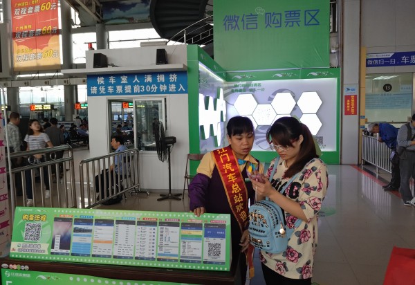 為了做好微信購票的宣傳推廣工作,從4月7日起,江門汽車總站創新推行“微信導購”服務,增加客運專職人員在微信體驗區協助和引導旅客學會利用微信平臺進行購票操作,促使更多的微信用戶參與到“微購”當中,力求提高微信購票數于全站票務總量的占有比例。據了解,該站通過近期創新微信體驗區等一系列措施,收到了良好的營銷推廣效果。