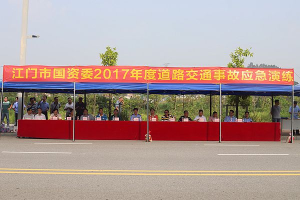 江門汽車總站消息(李子槐/文 劉志堅/圖)為切實提高市屬國資系統廣大干部職工應急意識和應急能力,著力提升應急管理工作水平,保障乘客乘車安全,減少事故的損失和影響,2017年8月31日下午,由江門市國資委主辦,江門市汽運集團、江門汽車總站、市交警支隊、市第二人民醫院以及蓬江區消防大隊協辦,舉辦了一次道路交通事故應急演練,江門市國資委屬下各公司代表到達現場觀摩了此次演練。