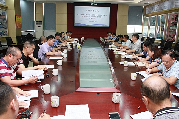 8月9日,江門汽車總站黨委召開擴大會議學習貫徹《廣東省加強黨的基層組織建設三年行動計劃(2018-2020)》部署會議,該站黨委書記林仲堯同志傳達集團公司學習貫徹“三年行動計劃”部署會議的精神和布置該站黨委貫徹落實“三年行動計劃”有關工作以及總站下半年黨建重點工作。林仲堯書記對參會的黨委委員、支部書記和各支部委員在工作上提出幾點要求: