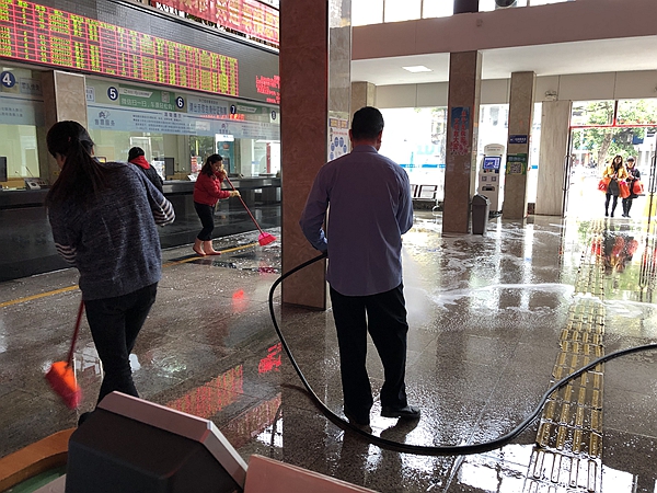 本次清潔行動重點針對本站的公共場所,團員志愿者們沖洗了售廳大廳、候車室、月臺、發車卡位和停車場地面,清理站前廣場和站場周邊牛皮癬,鏟除地面口香糖,并對售票廳和候車室天花板、門框、窗櫥、售檢票口、候車座椅等容易產生衛生死角的部位進行徹底清潔。在清潔行動,該站員工們不怕臟不怕累,用實際行動為旅客創造干凈、整潔、文明的候、乘車環境,為恩平市創建文明城市添一份力。