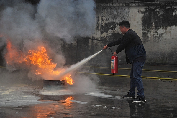 此次消防技能實操演練內容包括消防栓的使用和模擬油桶“火災”撲救兩部分。首先由總站義務消防隊隊長伍偉恩講解4Kg和35KgABC干粉滅火器的使用知識,再由總站義務消防隊進行消防栓操作示范和滅火器滅火示范,然后參演員工按順序輪流使用4KgABC干粉滅火器進行油桶“火災”撲救實操演練。通過實操演練,讓員工熟練掌握滅火器的使用方法,增強消防安全意識,提高火災自救能力。