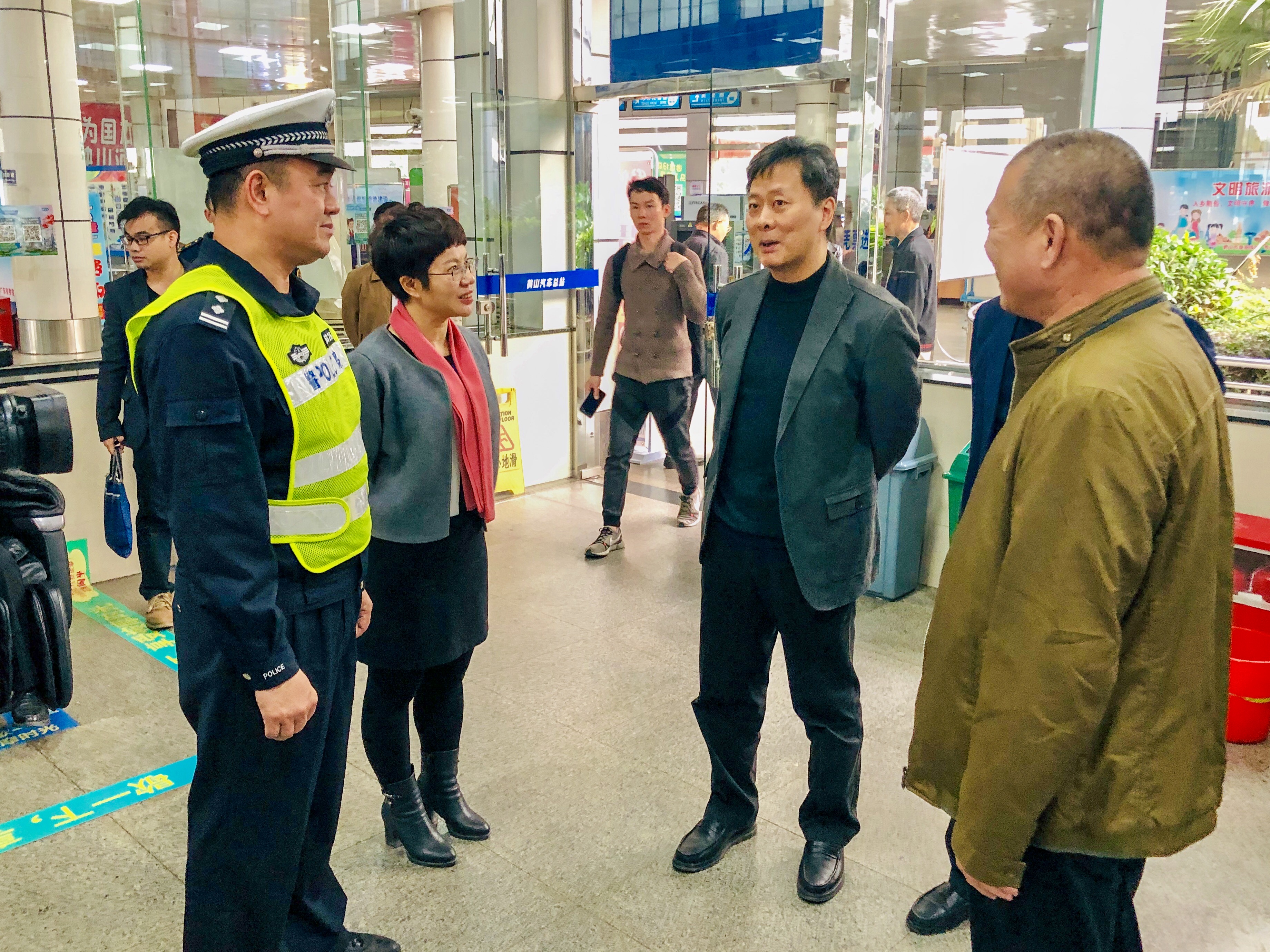 1月24日下午,鶴山市委書記、市長林賢進和副市長陳文帶隊到鶴山汽車總站檢查指導春運工作,市交通運輸局副局長陳桂梅、市交警大隊大隊長趙偉球等領導和鶴山汽車總站領導班子成員一起陪同檢查。