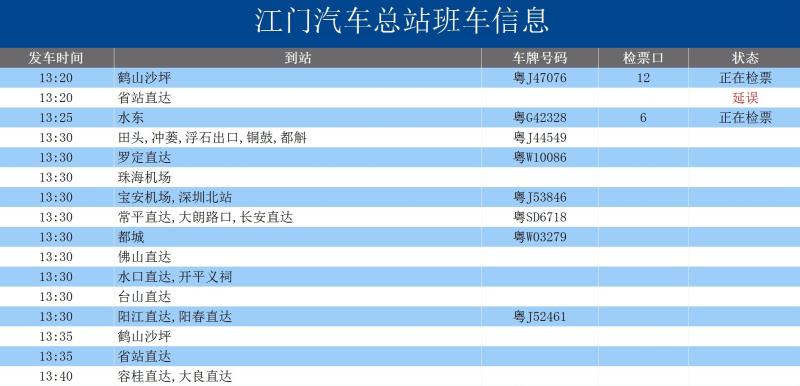 據了解,該播報顯示系統連接江門總站檢票口電視屏幕,通過讀取后臺客運數據,以實時滾動播放的形式,顯示當前時間段附近的班車狀態信息。此項創新舉措,為旅客提供了“機場式”信息服務,使旅客能及時了解和掌握自己乘坐班車的報班狀況、車號等動態信息,大大提升了旅客出行體驗。