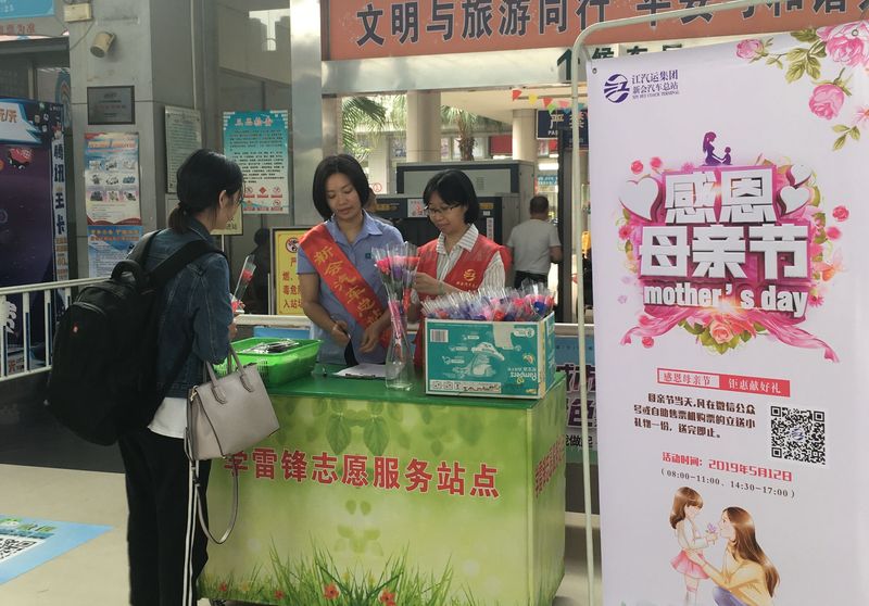 5月12日,新會汽車總站推出“感恩母親節”送禮活動,現場反應熱烈。