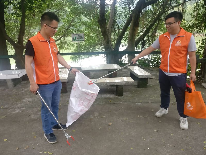 活動中,團員志愿者們身穿義工馬甲,手拿鉗子、垃圾袋等工具,認真細致地拾取公園沿途上的垃圾。一路上,他們有的拾取地面上丟棄的煙頭,有的彎腰拾取水溝中的塑料袋,有的拾取山邊灌木叢中的果皮、紙屑等,在公園各處留下了一抹抹辛勤的“橘色”身影。