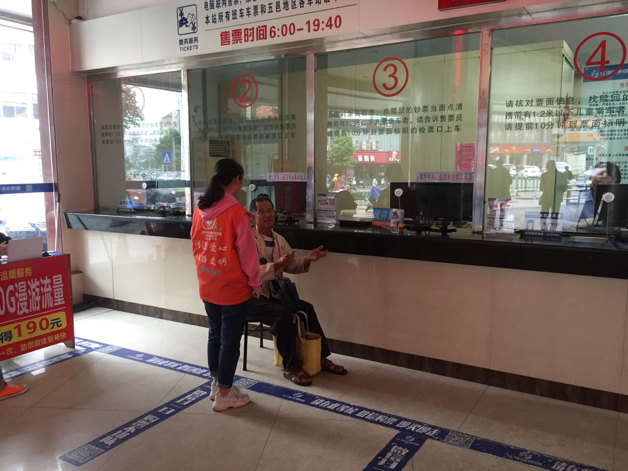 5月7日11時,一名年邁且步履蹣跚的老先生滿頭大汗地在售票窗口不停比劃,情緒非常激動。