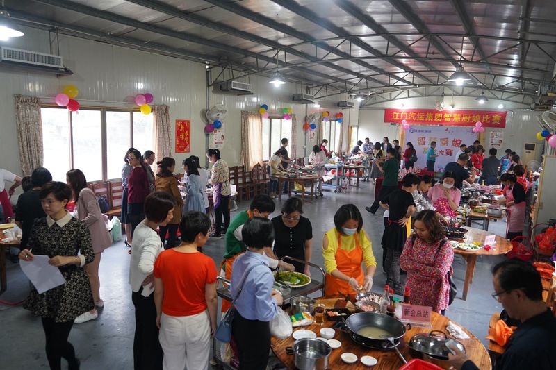 陽春三月,春暖花開,3月29日下午,為豐富我司女職工的業余文化生活,弘揚中國傳統飲食文化,展示集團公司女職工的才藝技能,營造快樂工作、快樂生活的良好氛圍,集團公司工會女職工委員會舉辦了以慶祝建國70周年為主題的“江門汽運集團智慧廚娘”比賽,并特邀中海油公司女職工參與比賽。集團公司總經理區海棠、黨委副書記、工會主席馮潔文、副總經理李植輝、中海油江門分公司副總經理梁裕安及有關單位相關領導參加活動并擔任評委。