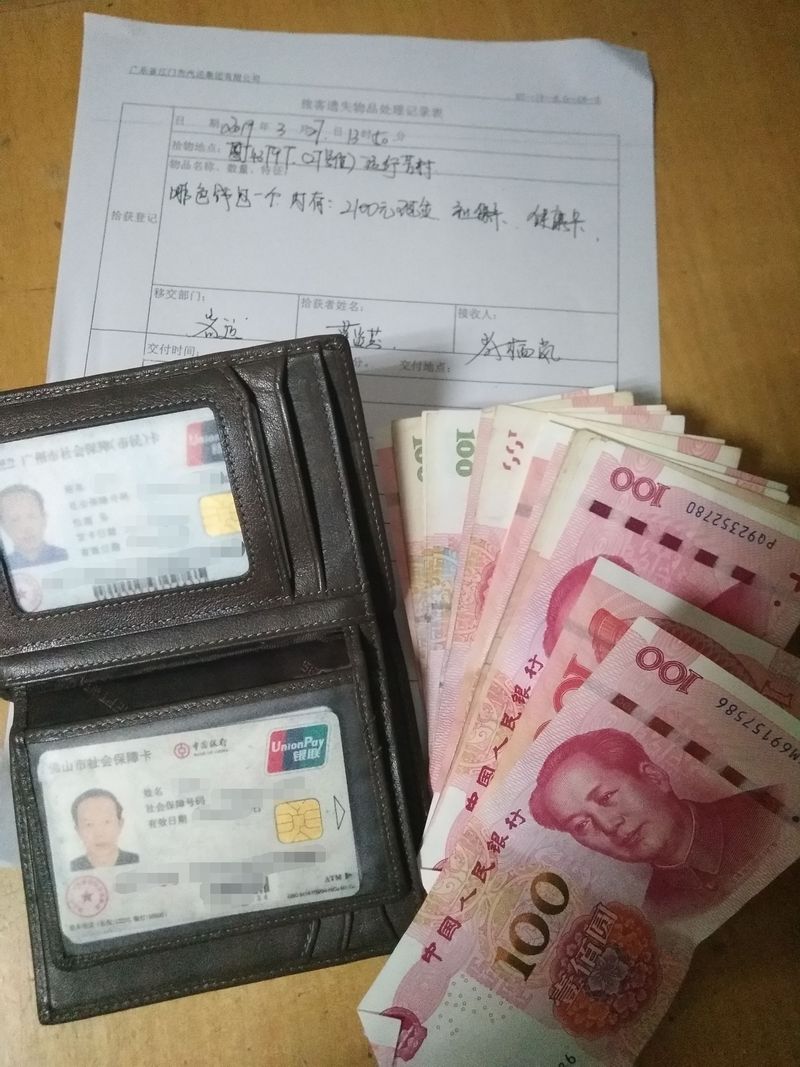 3月27日13時50分,恩平汽車總站檢票員莫炎芬對準備發班運行恩平至芳村的粵J43797車清點人數時,在該車27號座位側邊發現一個啡色錢包,經初步了解,她估計是上一班從芳村返恩平的旅客遺漏的。