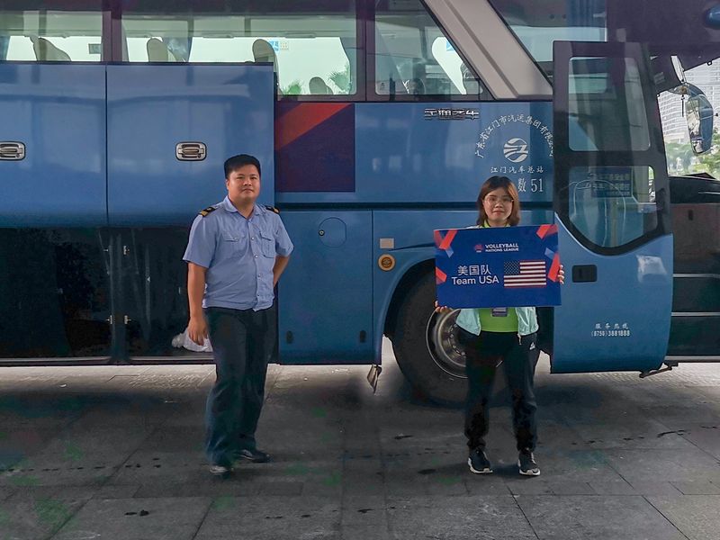 江門市汽運集團有限公司江門汽車總站憑借去年服務世界排球聯賽期間良好的服務形象和口碑,今年再次成為大賽江門站的保障運輸合作單位,為賽事提供安全優質的運輸接送服務。為滿足全方位的接送需求,江門汽車總站派出9輛大巴和9輛商務轎車作為接送用車,并配備22名優秀專業駕駛員,全天候往返于機場、酒店和賽事場館等各個節點,緊緊圍繞“安全第一、保障有力、服務到位”三大原則,全力為大賽人員的出行保駕護航,助力運動健兒們盡情拼搏賽場。