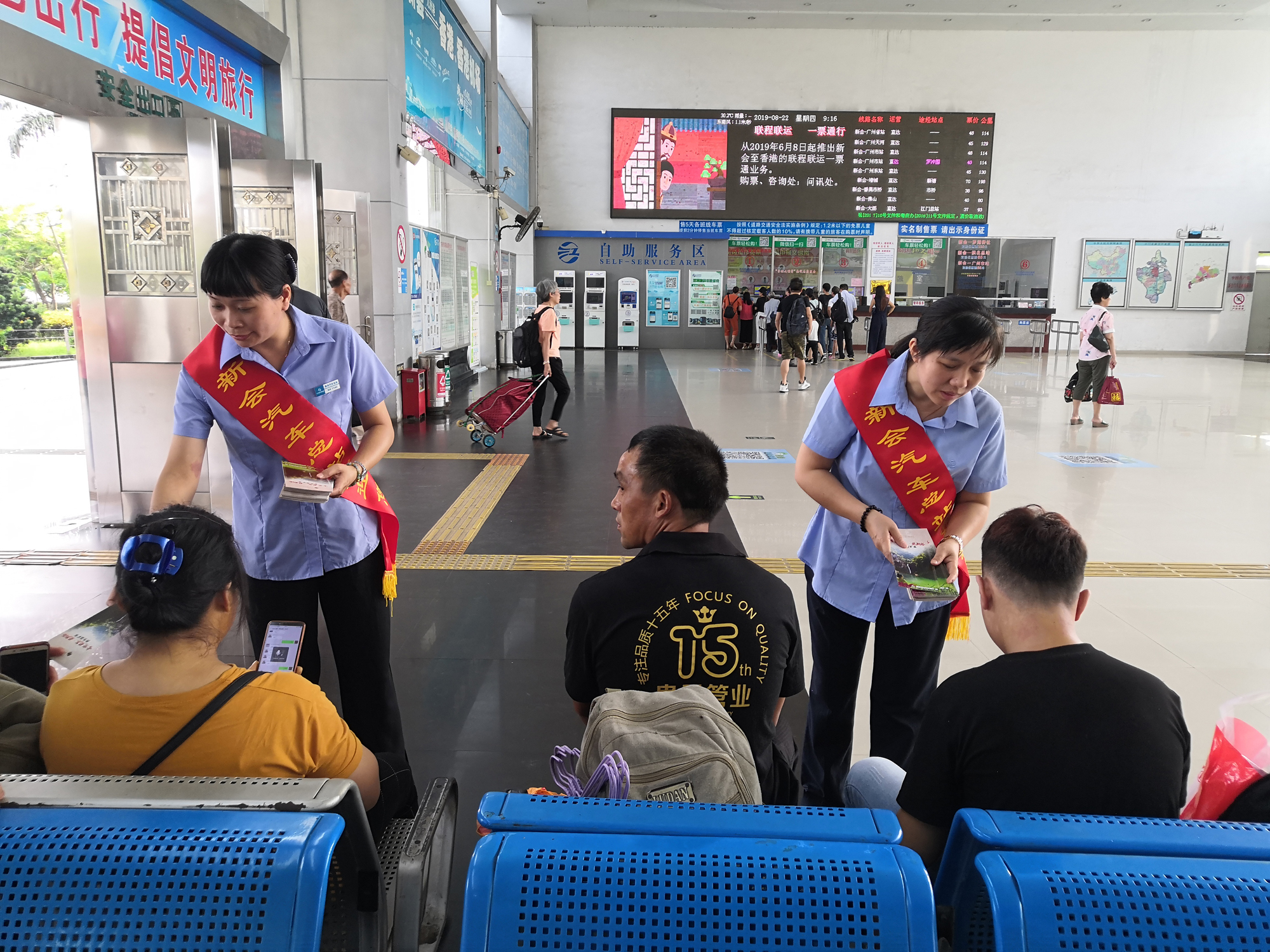 8月22日上午,新會汽車總站“青年文明號”——問詢服務崗青年服務員在車站開展《文明旅游宣傳指引》宣傳活動。活動當天上午,新會汽車總站“青年文明號”——問詢服務崗青年服務員在車站開展《文明旅游宣傳指引》宣傳活動,圍繞宣傳文明出行、營造創文復檢氛圍、提升本市文明乘車形象、在公共場所表現公共道德等重點工作,推進“文明出行”新理念,為我站迎接創文復檢貢獻自己的力量。通過這次宣傳活動,使全社會共同參與文明出行、文明旅游的行動中,為推動良好有序交通運輸市場營造良好的氛圍,創建文明城市。