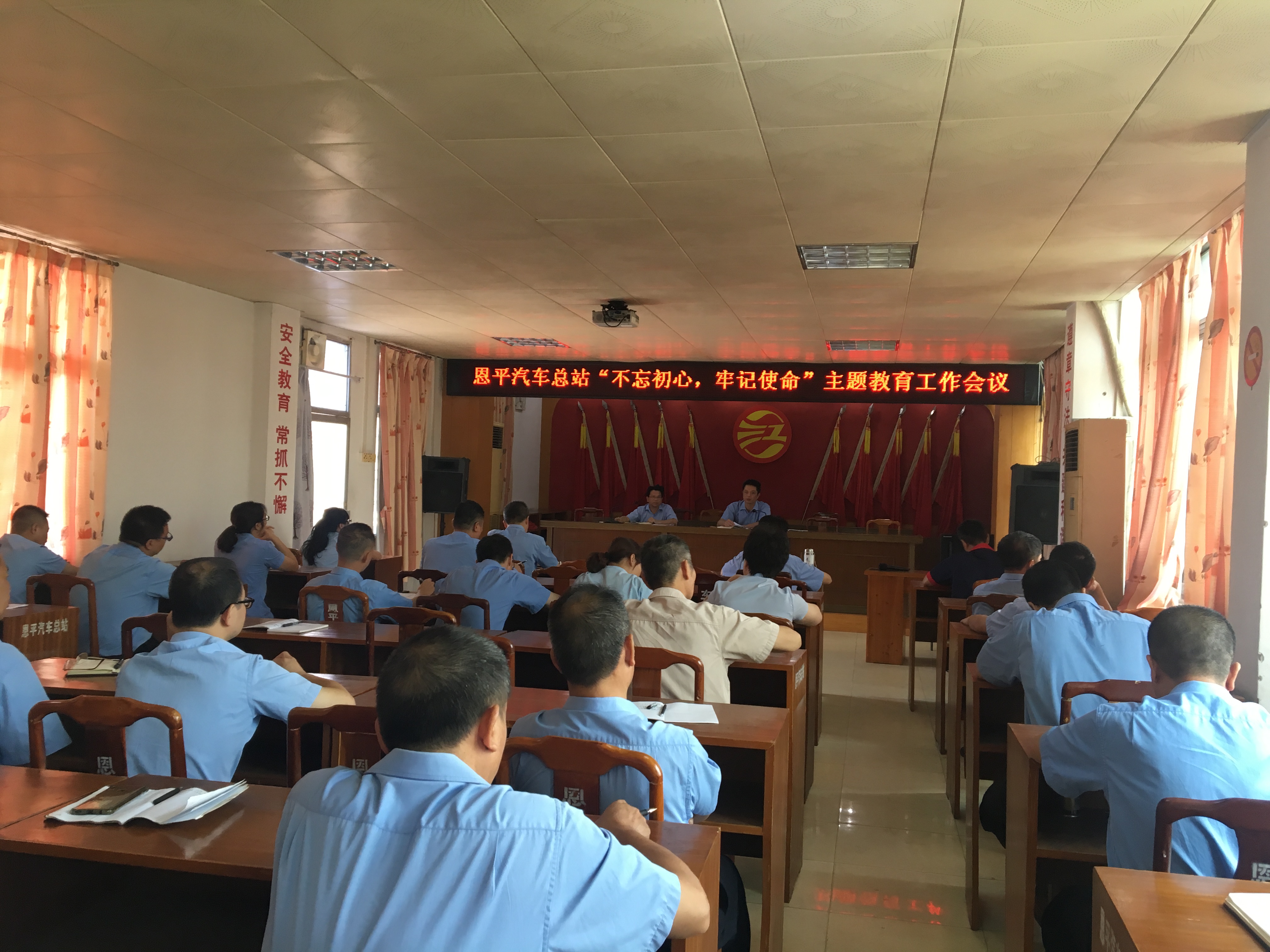 9月24日上午,恩平汽車總站在3樓會議室召開“不忘初心、牢記使命”主題教育工作會議,會議由黨總支副書記岑能斌主持,黨總支書記葉柏儒作部署講話,該站中層以上干部及全體黨員參加會議。