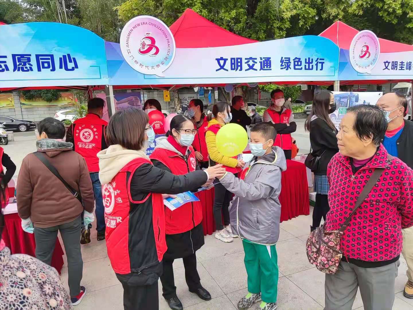 12月5日上午,由團區委、區義工聯舉辦了創建文明城市志愿服務主題日活動在新會人民會堂前舉行,新會汽車總站與新會區交通運輸局、新會公汽聯合組成義工小組,積極宣傳“文明交通、綠色出行”理念。