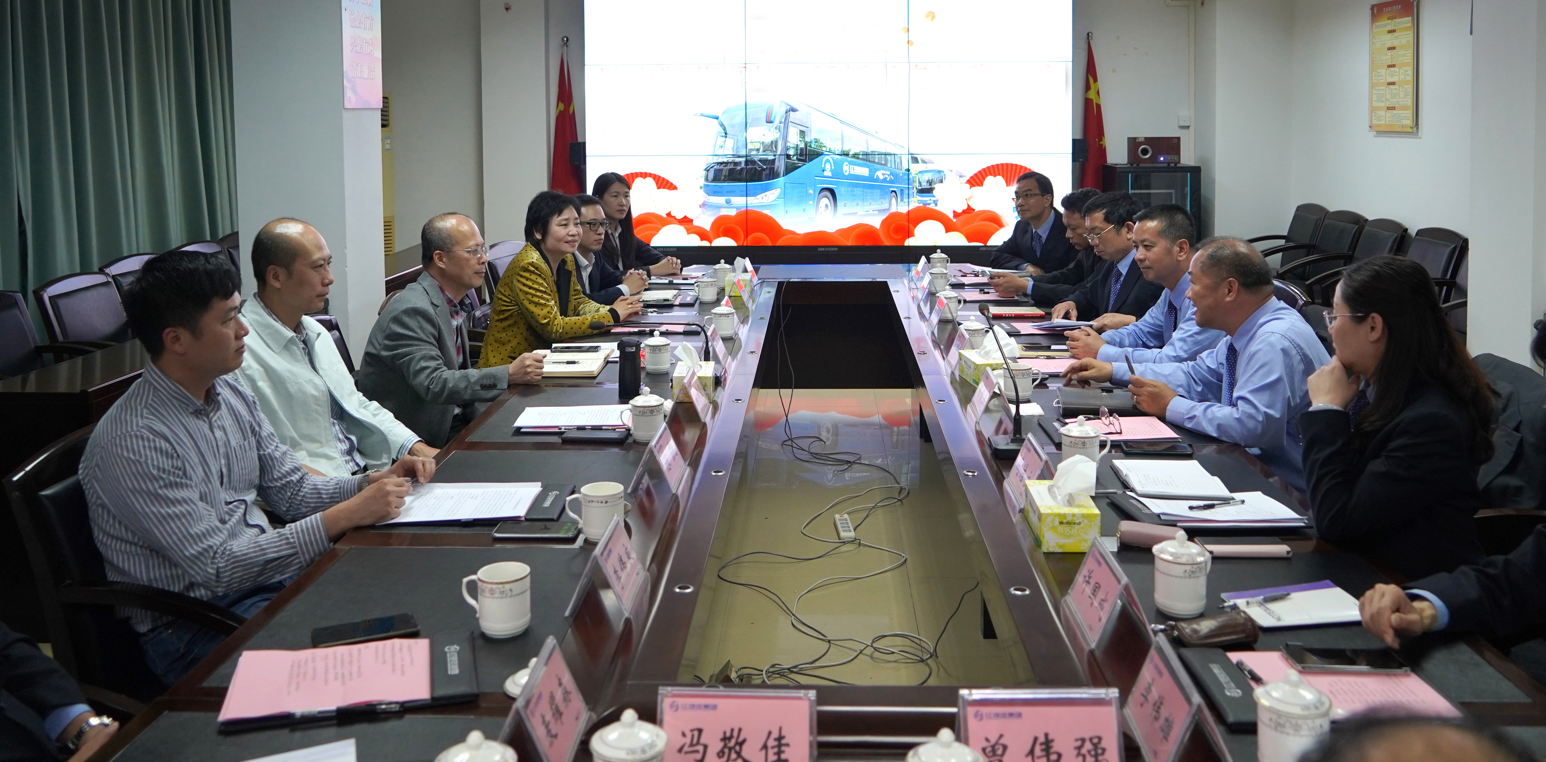 2月19日下午,市交建集團董事長陳中堅,黨委委員、副總經理袁景祥,黨委委員陳凱到江門汽運集團開展新春走訪調研。集團公司黨委書記、董事長呂俊杰,黨委副書記、總經理區海棠,黨委副書記、工會主席馮潔文等領導班子成員及集團相關部門和單位負責人參加座談。