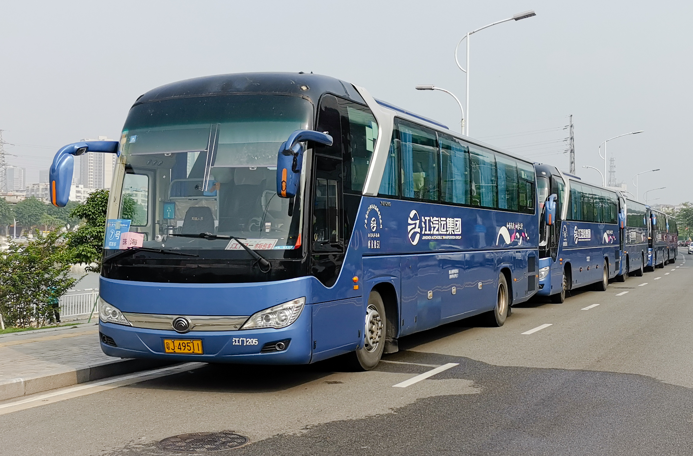 江門汽車總站為滿足客戶的接送需求,在活動期間派出17輛旅游車作為接送用車,以及精選17名優秀專業駕駛員,嚴格按照防疫及安全行車的相關工作要求,落實各項安全措施,準時準點地穿梭于學校、酒店和賽場等每個節點,全力為活動人員的出行保駕護航。
