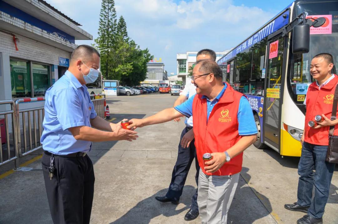 近日,江門文旅交通集團公司黨委書記、董事長呂俊杰,黨委副書記、總經理區海棠,黨委副書記、工會主席馮潔文及其他領導班子成員,分別帶領公司慰問組到各基層一線,將清涼飲料送到員工的手上,并叮囑員工注意身體,做好防疫工作,繼續為旅客提供優質服務。
