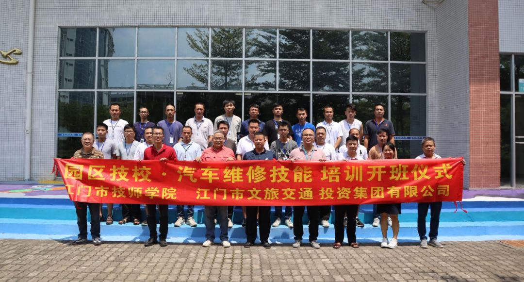 7月25日,江門文旅交通集團與江門市技師學院聯合舉辦小汽車維修技能提升培訓班。集團公司技術設備部經理梁啟朝、副經理黃志偉,技師學院培訓部副部長莫志威、汽車工程系主任禹德偉、外聯中心主任劉波林等出席開班儀式,集團公司屬下各運輸單位學員共21人參加培訓。