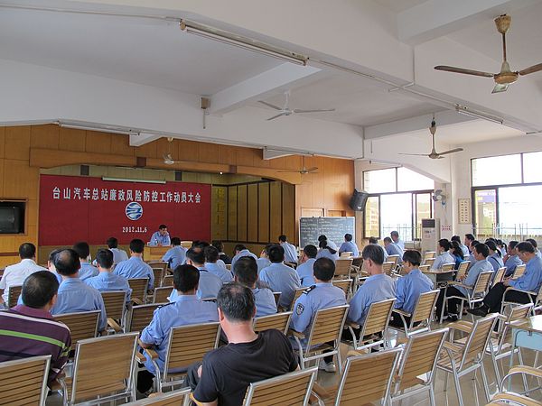 11月6日,臺山汽車總站在四樓禮堂召開了廉政防控工作動員大會,全站黨員干部共65人參加了會議。總站黨委書記黃懷旺同志主持會議,并作了動員講話。