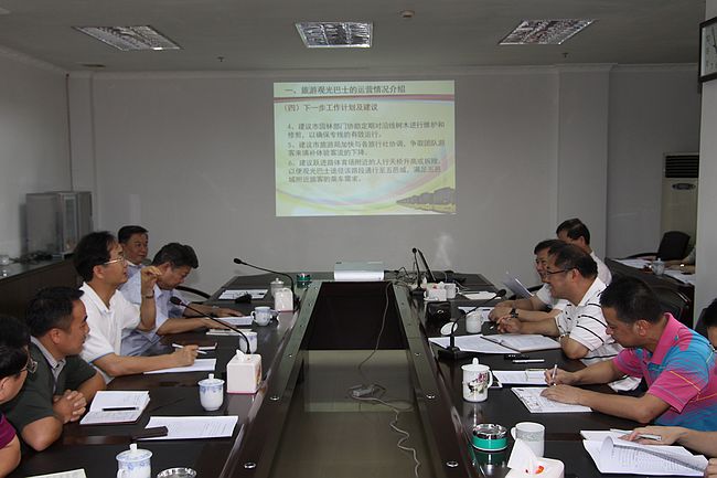 5月13日下午,江門市副市長易中強、副秘書長馮玩欽率市府辦、旅游局、江門日報、城建集團等領導到集團公司調研旅游觀光巴士運營情況。