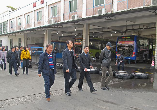 12月27日上午,江門市易中強副市長帶領檢查組來到江門市公共汽車公司開展節前安全生產檢查,江門市國資委主任唐宇霖、市建設集團公司董事長陳中堅、市汽運集團公司董事長呂俊杰等單位領導陪同檢查(如圖)。