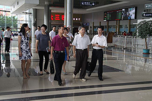 7月2日,駐省交通運輸廳正廳級紀檢員、監察專員李石穩一行5人在江門市交通運輸局副局長趙瑞玲,集團公司總經理區海棠,黨委副書記、工會主席馮潔文以及江門汽車總站負責人陪同調研。駐省交通運輸廳正廳級紀檢員、監察專員李石穩一行深入基層“接地氣”,到江門汽車總站對該站安檢、監控室、候車大廳、vip候車室等實地進行調研。