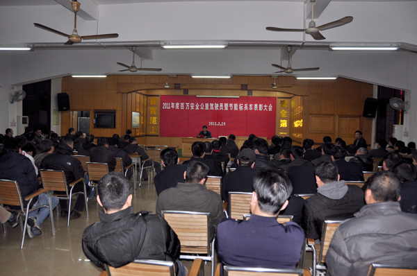 2月29日晚,臺山汽車總站在禮堂舉行2011年度百萬安全行車公里駕駛員暨節能標兵車表彰大會。會上,該站車隊長徐登日宣讀了江門市汽運集團有限公司《關于表彰百萬安全公里駕駛員的決定》,2011年度該站共有72名百萬安全公里駕駛員以及2名節能安全行車標兵獲獎。